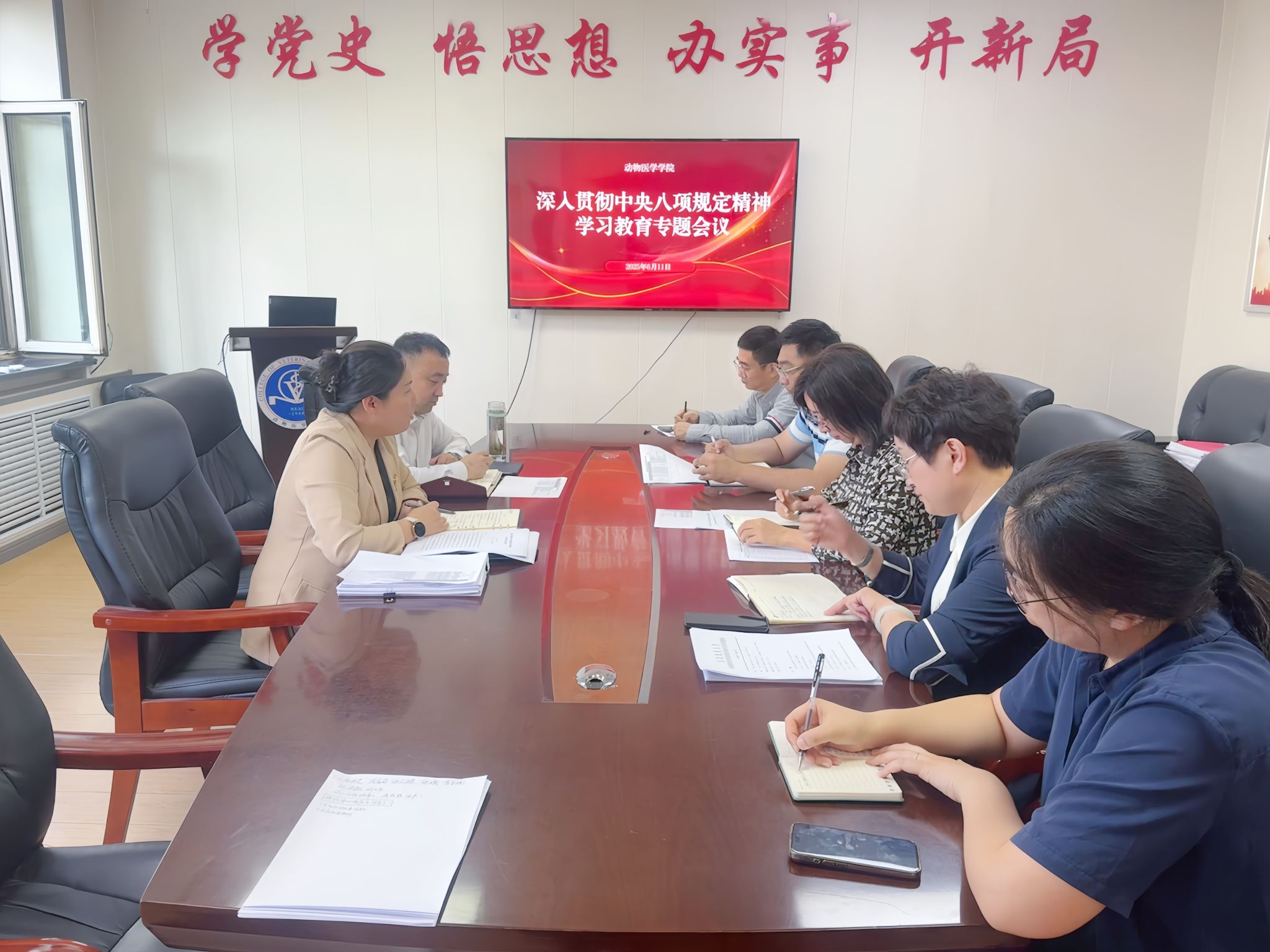 6月11日下午,ok138电子官方网站深入贯彻中央八项规定精神学习教育专题会议在牧医楼202会议室召开,ok138电子官方网站全体领导班子成员、党委委员、纪委委员、部分党支部书记参加会议。会议由ok138电子官方网站党委书记张春燕主持。