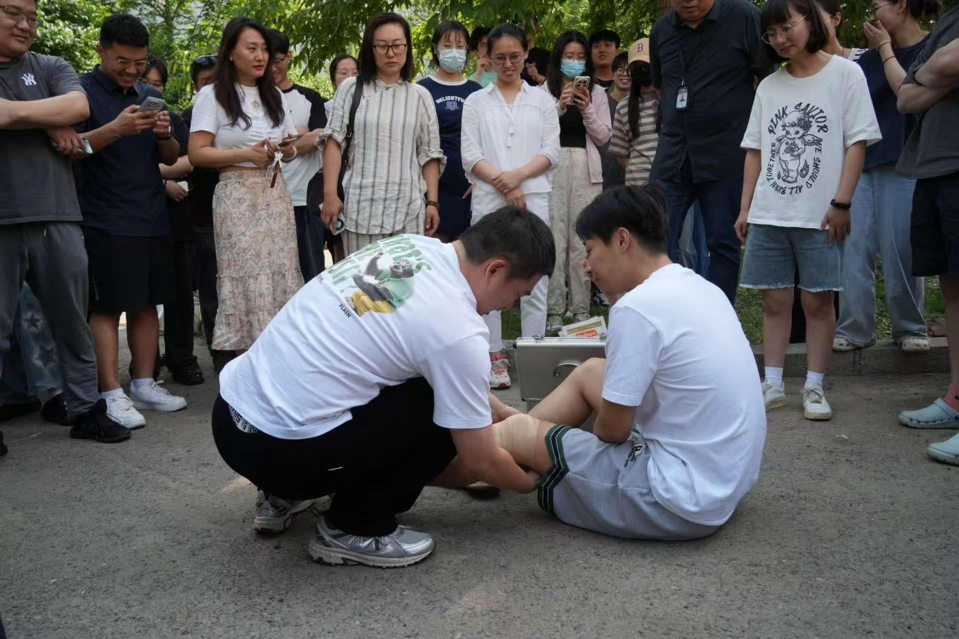 消防安全逃生演练开始后,相关人员发现楼宇内不明着火点,迅速报告并拉响警报,全体师生严格执行预案,运用培训掌握的逃生知识,在各楼层疏散员的引导下,快速有序撤离到安全区域,并对逃生过程中的受伤人员,进行了现场救助包扎。