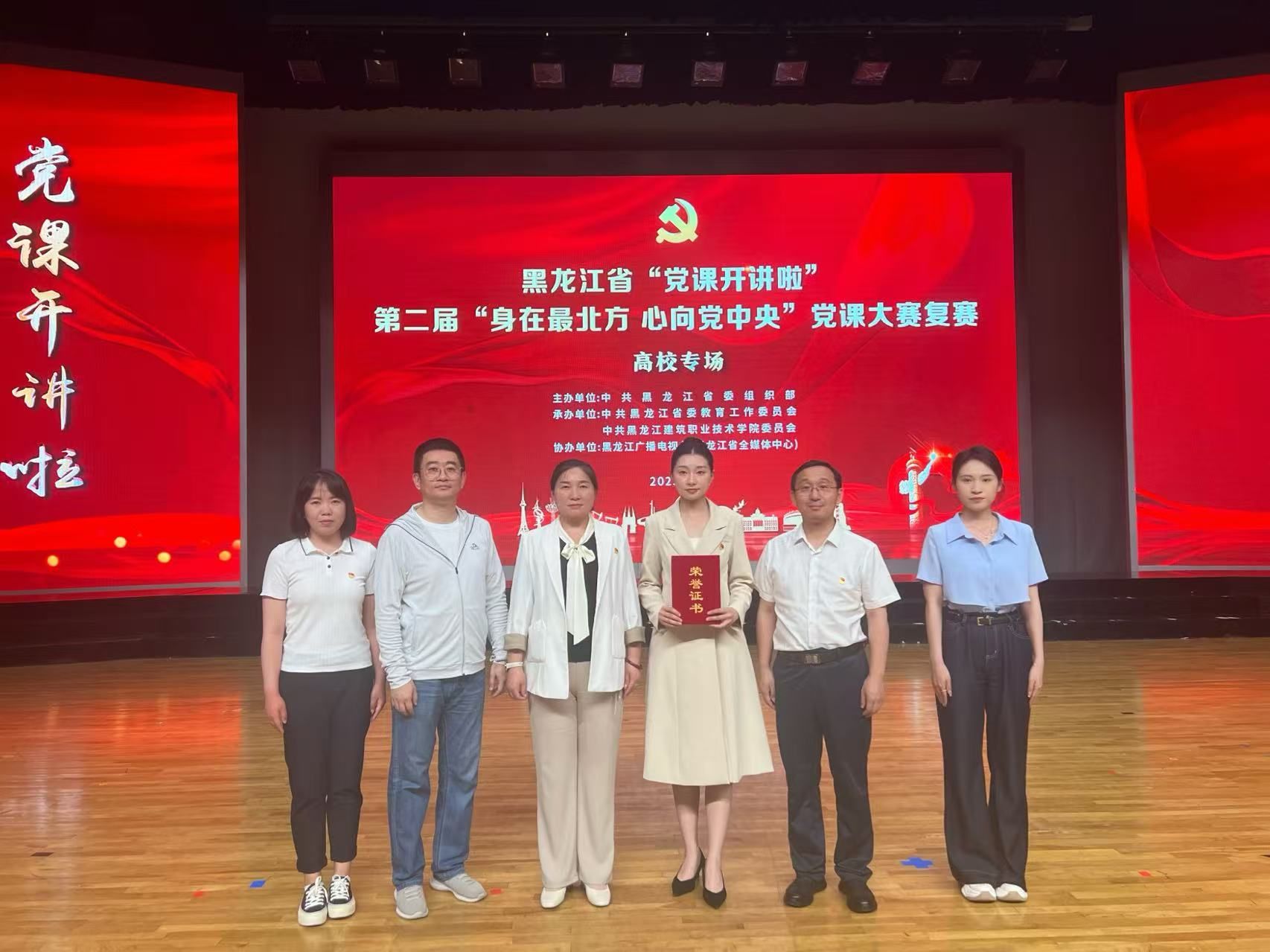 6月19日下午,由中共黑龙江省委组织部主办,黑龙江省委教育工委、黑龙江建筑职业技术ok138电子官方网站承办,黑龙江广播电视台协办的第二届全省“身在最北方、心向党中央”党课大赛高校专场复赛暨第二届全省高校“身在最北方、心向党中央”党课大赛决赛在黑龙江建筑职业技术ok138电子官方网站隆重举行。ok138电子官方网站员工党支部书记李佳琦主讲的党课《攥紧中国种 守护“龙江芯”》荣获二等奖。