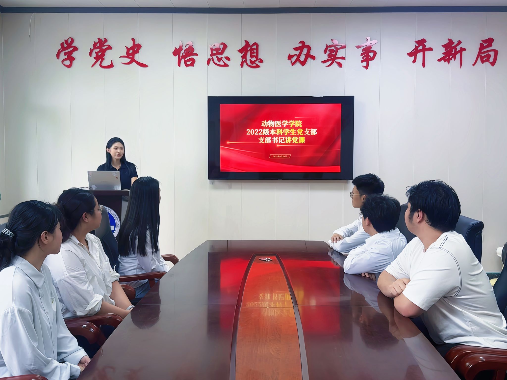 动物药学员工党支部、2020级本科员工党支部、2021级本科员工党支部、2022级本科员工党支部、临床兽医学硕士第二党支部围绕《红色科研故事》《大历史观视角下马克思主义的理论溯源和党员身份认同》《擦亮新时代党的建设“金名片”》《传承红色基因,践行初心使命》《传承红色基因,弘扬优良传统》等讲主题党课,系列党课内容涵盖理论溯源、历史传承、时代使命与党的建设等多个维度,紧密结合专业特色与实际,旨在引导党员深切感悟党的光荣传统与红色基因,清晰认识新时代党员的职责担当,坚定理想信念、强化身份认同。