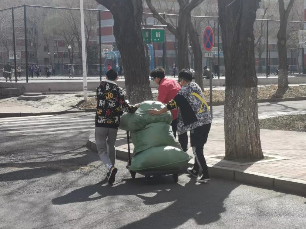 清点好衣物后,我们招募志愿者运送衣物到德邦快递点。