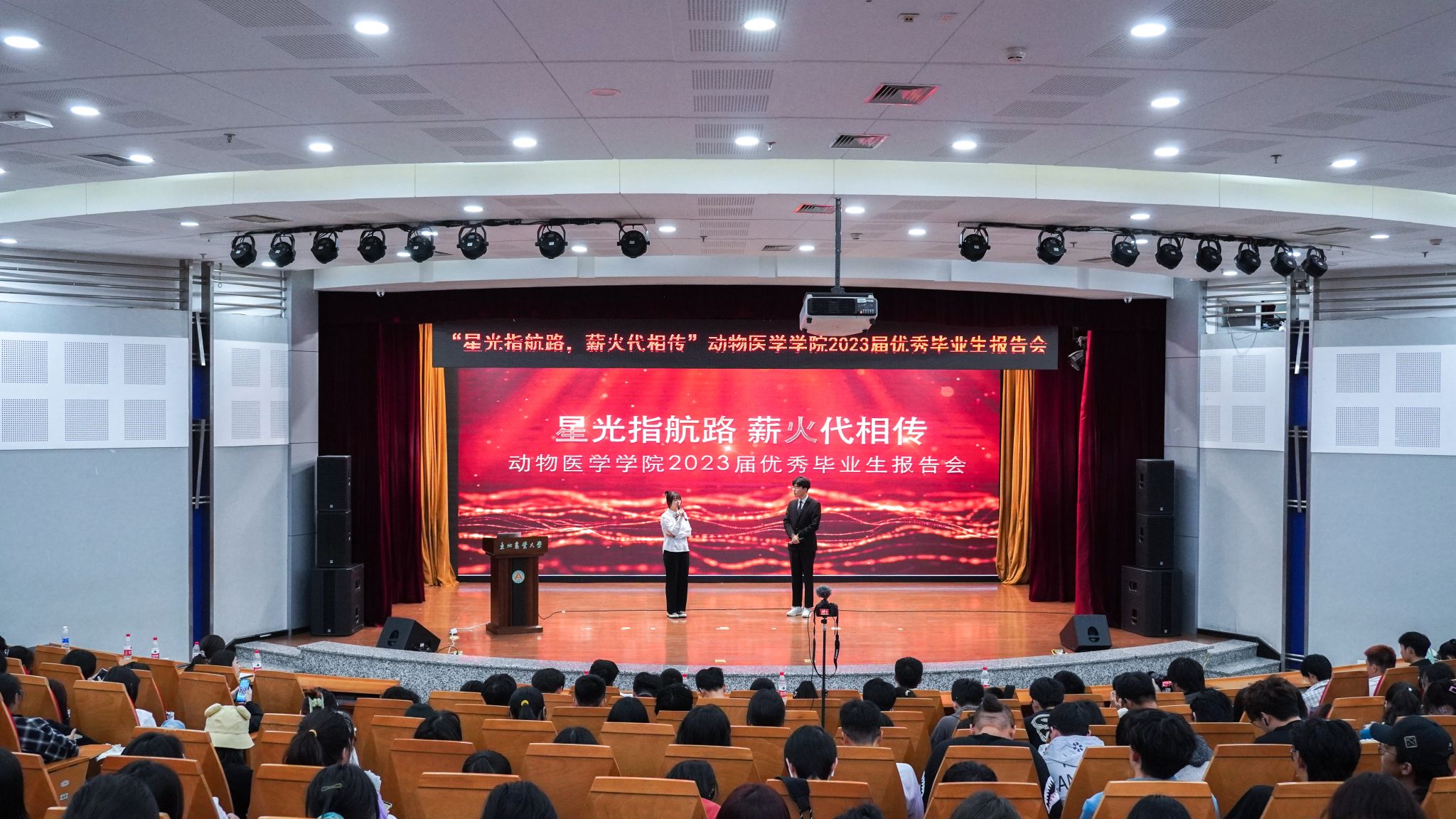 为充分发挥优秀毕业生的典型示范与朋辈引领作用,6月3日下午,ok138电子官方网站在图书馆一楼报告厅举办“星光指航路,薪火代相传”2023届优秀毕业生报告会。6位优秀毕业生结合自己亲身经历和感受,用朴实无华的语言,鲜活生动的事例,从不同角度介绍了他们执着追求、不懈奋斗的感人事迹,报告内容丰富,为在校员工分享了大员工活的经验、收获与感悟。本科动药专业毕业生吴天佐分享了“从员工干部到国门卫士的心路历程”,本科动医专业毕业生宁晖以“研途漫漫,踔厉前行”为题,分享了考研路上的奋斗往事,本科动药专业毕业生陈嘉仪从学习方法出发讲述了绩点提分的方法以及保研经验,本科动医专业毕业生郭致远分享了自己科研经历,并对大家最关注的问题进行了解答,硕士毕业生周聪聪从就业的角度分享了本科生与研究生差异,结合自身经历讲述了研究生就业的感悟,博士毕业生包佳鑫讲述了从本科到博士这一路的励志往事及心路历程。每位毕业生汇报完后分别对观众提出的问题进行了细致的解答。