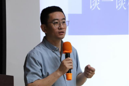 霍晨光做主题为“谈一谈校园新闻写作与摄影”的讲座
