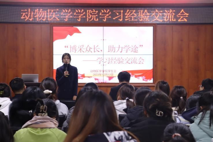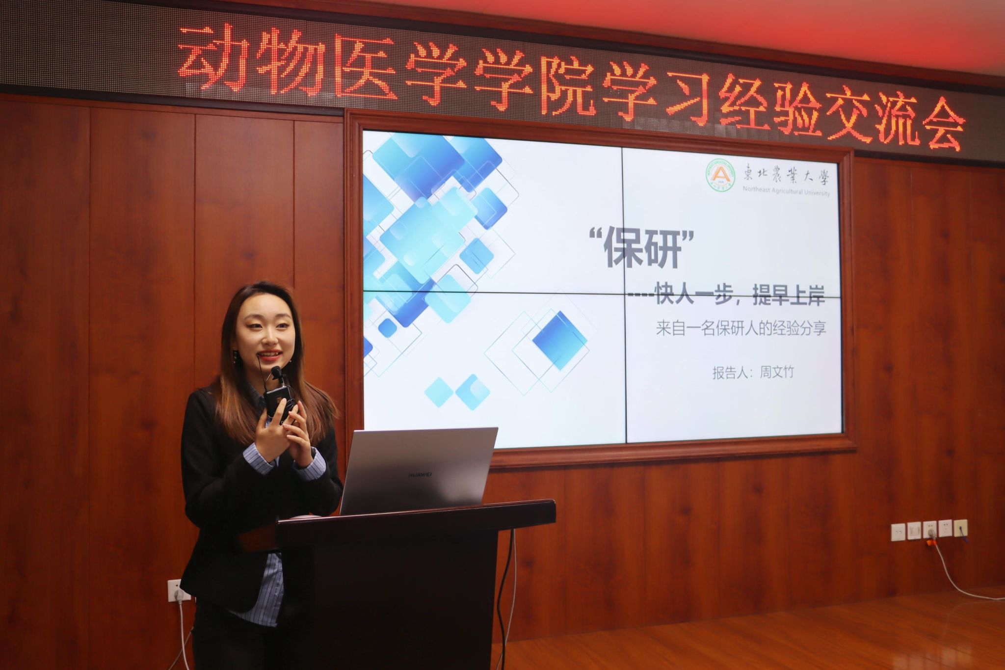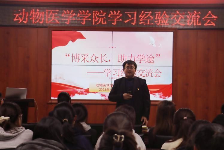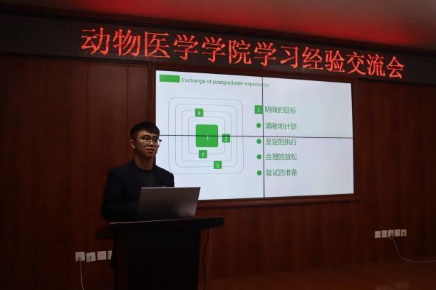 动物药学专业石春分享了自身考研历程以及经验总结,列出多条注意事项,帮助有考研意向的同学规划学习道路,并建议同学们多向优秀的学长学姐提问,结交志同道合的考研伙伴;预防兽医学专业朱容圣强调考研过程的心理调节,总结笔试面试成绩细则,讲解了考研路上可能会存在的信息差与陷阱,并提出考研分数与时间分配的建议。
