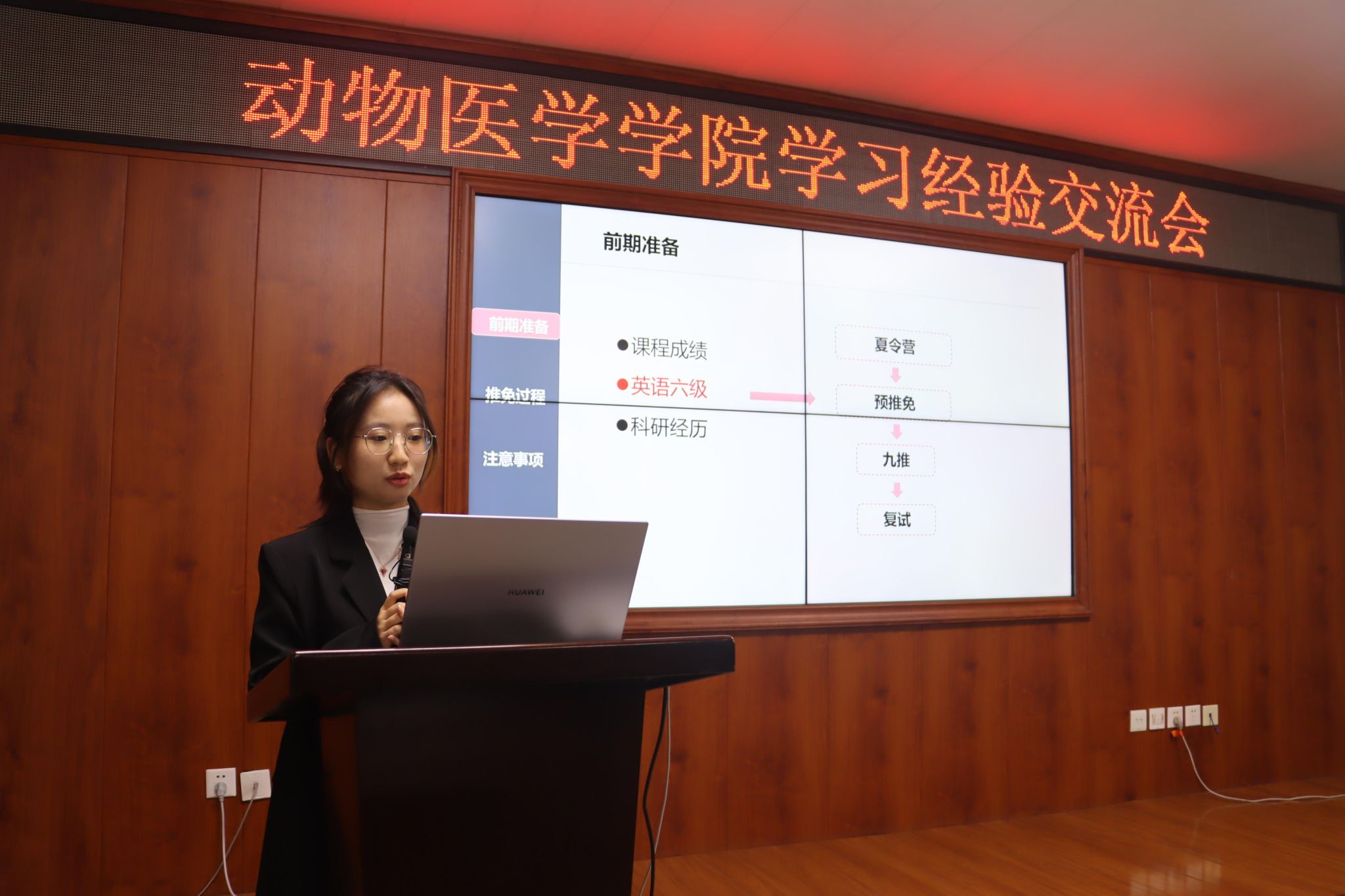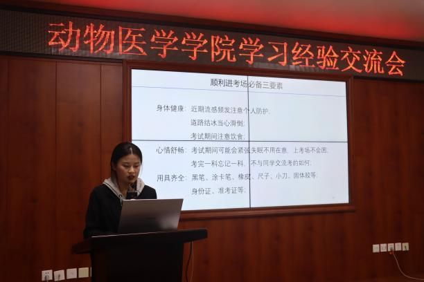 临床兽医学专业周文竹详细讲解了保研流程、院校选择、夏令营准备工作等,表示保研是一场持久战,信息差至关重要,需要了解目标院校并付出长久努力;预防兽医学专业李卓然介绍了校内保研资格获取条件等方面,鼓励同学们尽早确立目标,保持学习惯性,不要放松懈怠,放大自身优点。