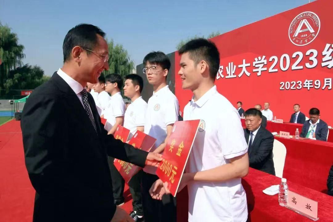 典礼上,校党委书记李长生为ok138电子官方网站见义勇为的新生姚烨城、胡豪杰颁发奖金。今年4月,在黑龙江省哈尔滨市防洪纪念塔江边,一名老人不慎落水,危急时刻,姚烨城、胡豪杰等三名同学临危不惧、有勇有谋,合力断金、接力救人,最终,老人被成功救上岸,各大媒体对此事进行了报道。他们也得偿所愿,顺利考取东农动医ok138电子官方网站研究生,他们表示,在未来的研究生学习中,将会一步一个脚印,高质量完成实验与学业。